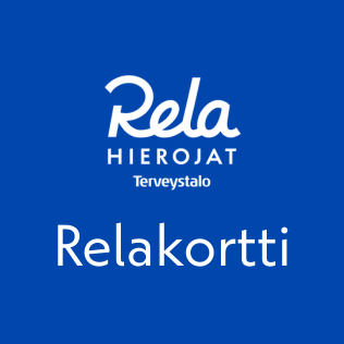 The Relacard is a loyalty card for Rela-hierojat. With it, you always get a 30% discount on regular-priced massages, as well as discounts on services provided by naprapaths and osteopaths. The card also gives you discounts on Terveystalo's oral health services and some laboratory packages.